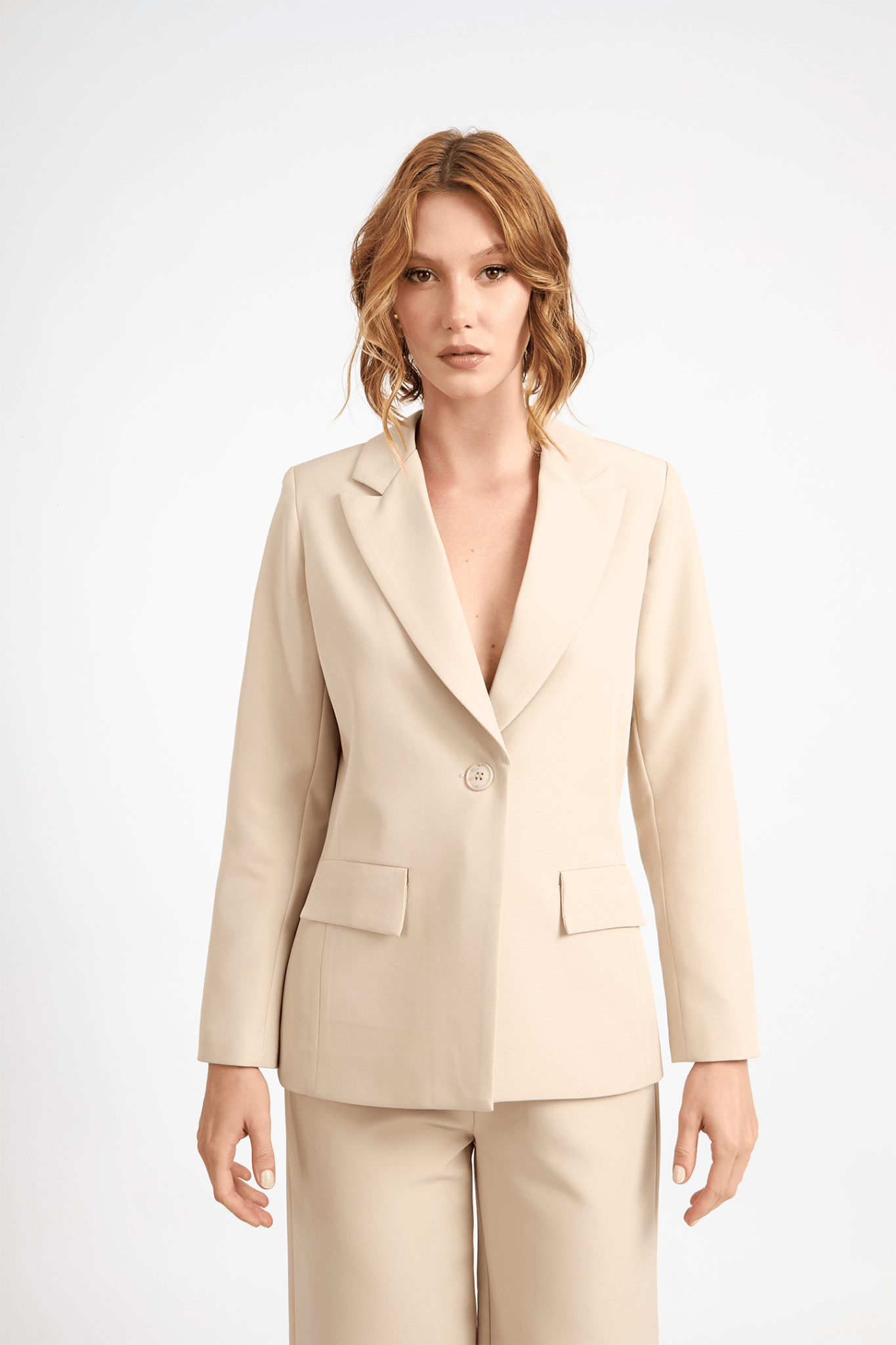 El diseño frontal se mantiene limpio y minimalista, con un único botón que asegura un cierre sofisticado. Pensando en la funcionalidad, Selina cuenta con dos bolsillos que son completamente funcionales y están acabados con una elegante solapa. Este blazer ha sido diseñado para ser el match perfecto con los Pantalones Tina y Catalina, permitiendo crear un conjunto sastre coordinado, versátil y sofisticado, ideal para la oficina o eventos formales.