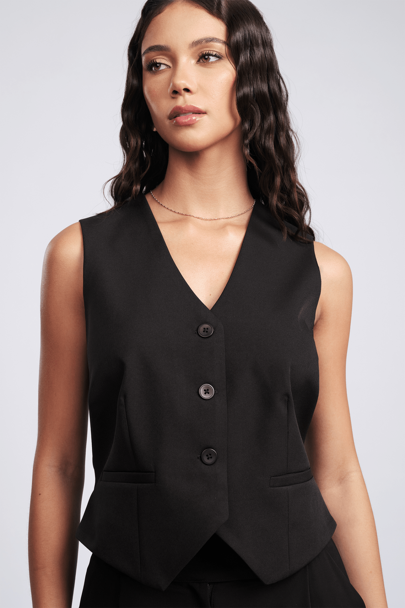Su estructura cuidadosamente diseñada lo convierte en una pieza clave para looks de oficina, salidas o eventos especiales. Este chaleco es una opción moderna y funcional para quienes buscan estilo, versatilidad y una silueta definida en una sola prenda.