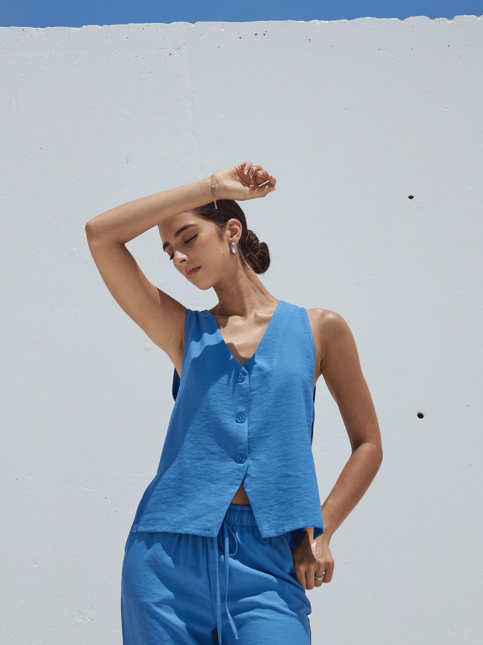 Eleva cualquier outfit con este chaleco. Sigue la tendencia de escote lateral y resalta en culaquier entorno. Elige el color de tu preferencia y añade nuestro bestseller a tu guardarropa. Siéntete sofisticada y cómoda siempre.