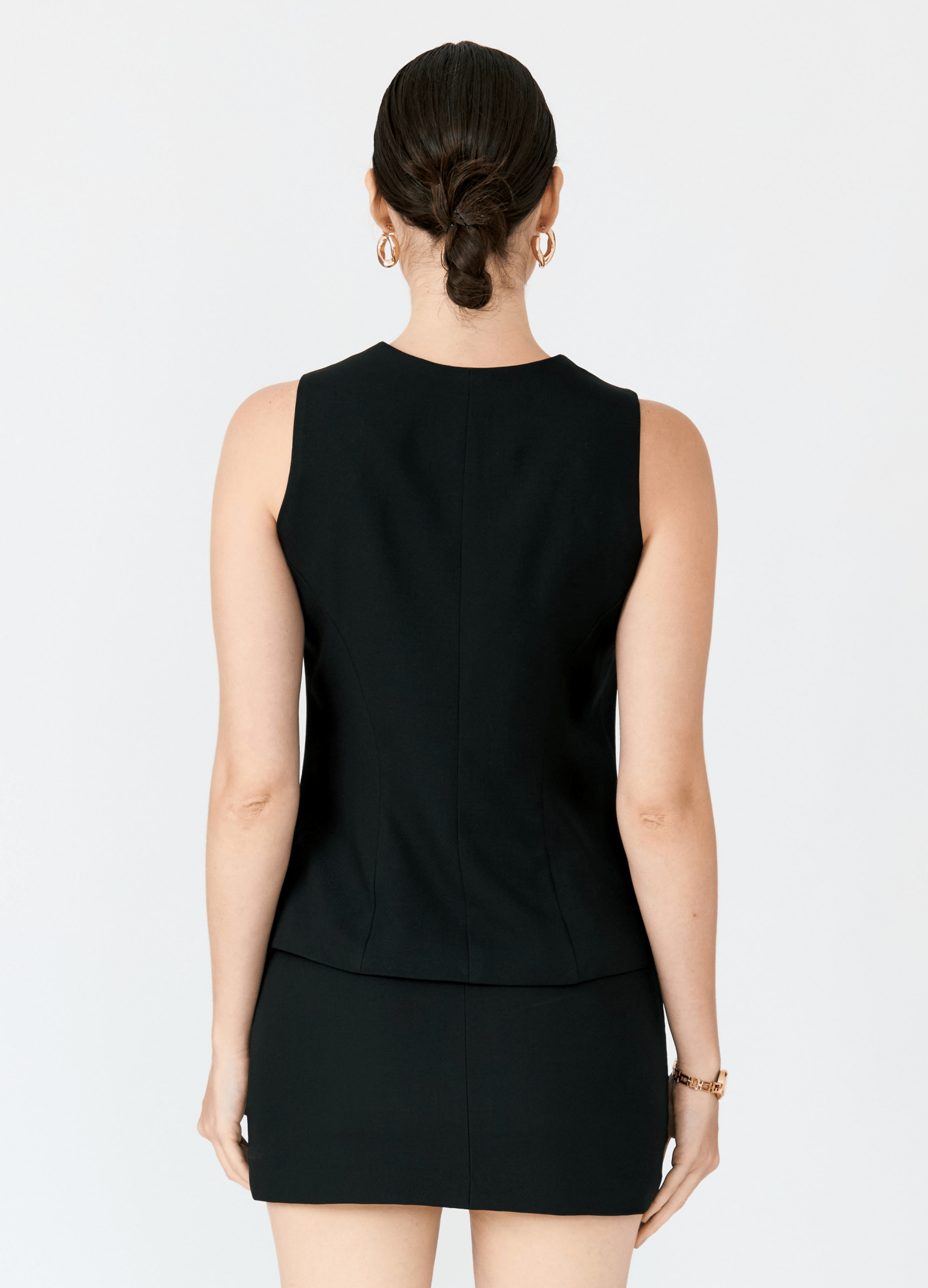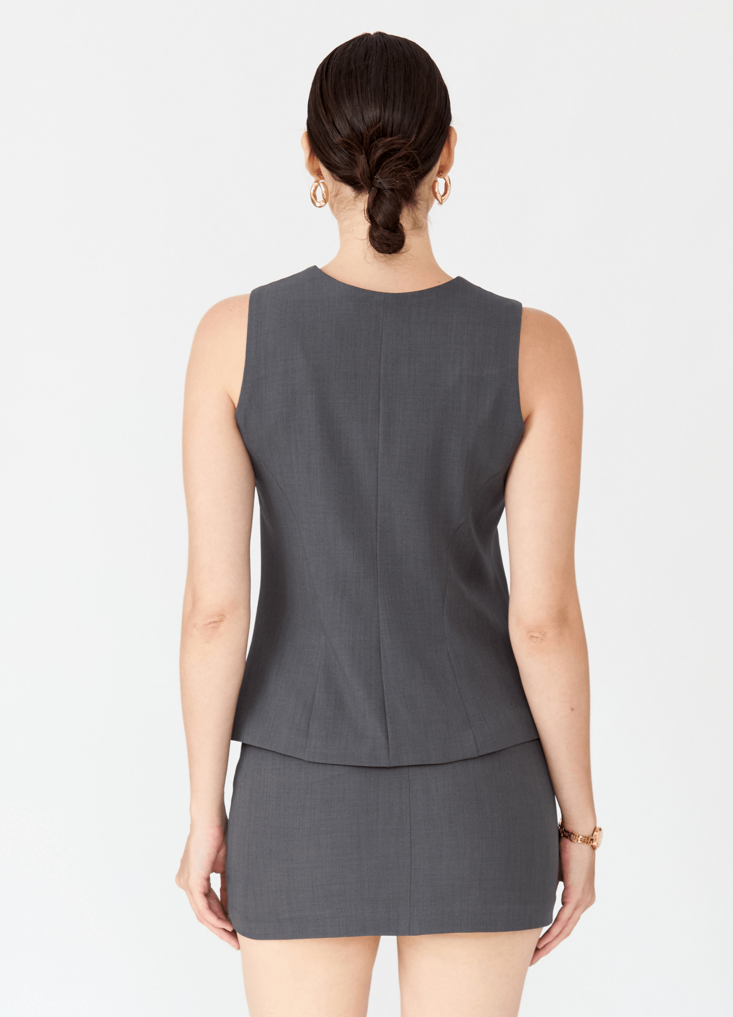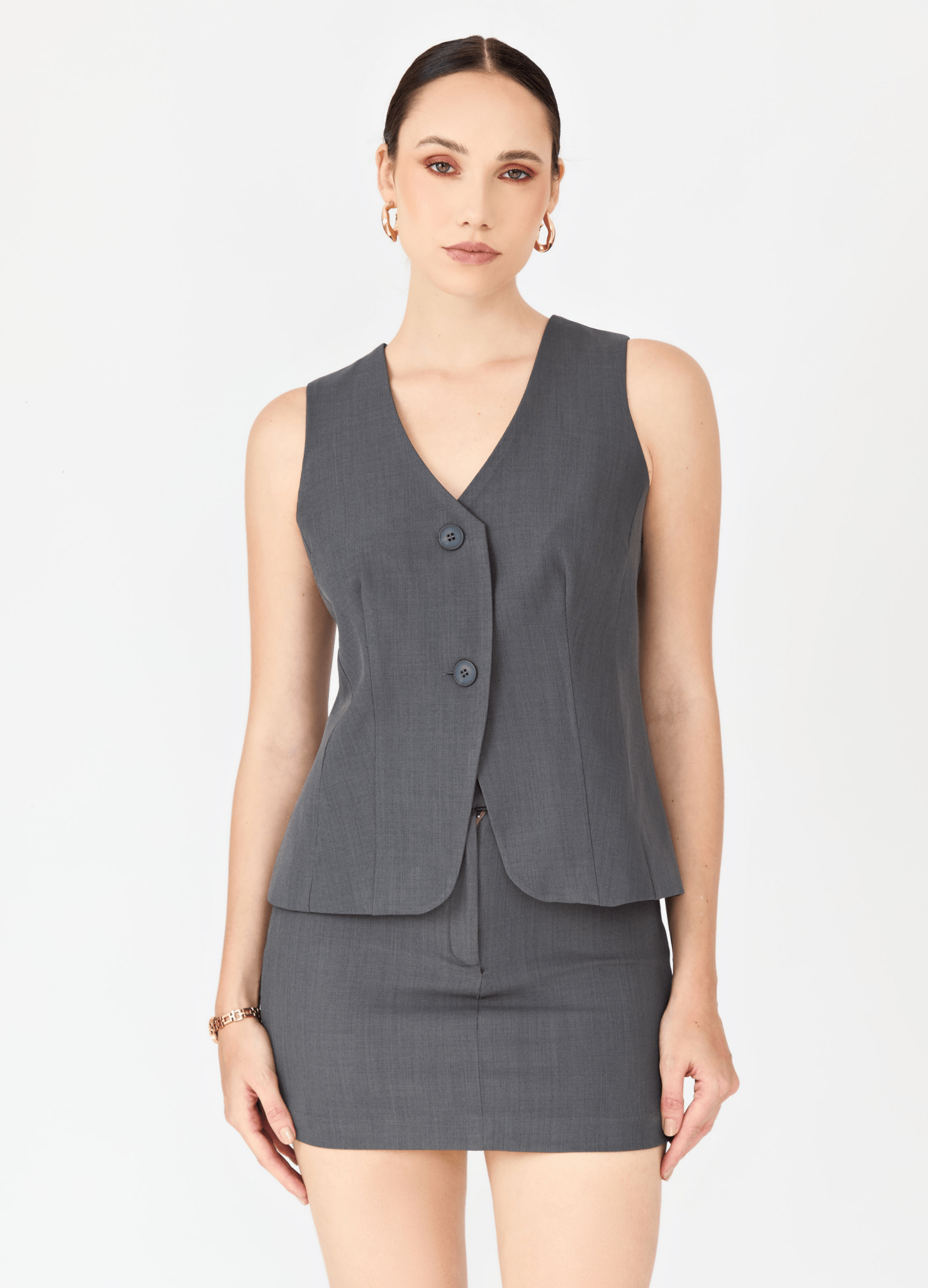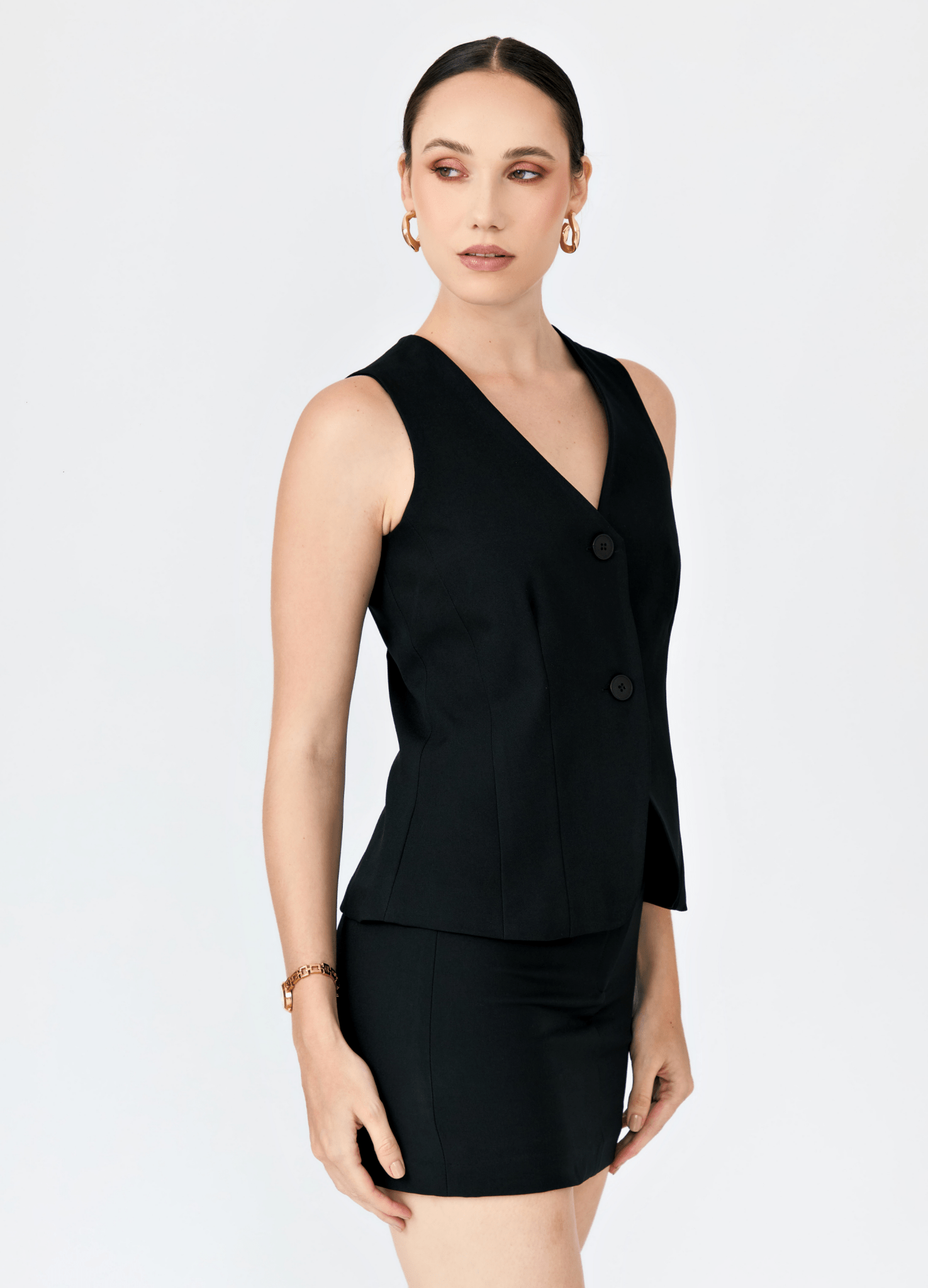 El Chaleco Virginia Sastre es la pieza clave de la sastrería moderna que se adapta sin esfuerzo a cualquier código de vestimenta, desde casual hasta formal. Este chaleco estructurado es un esencial de armario, que se distingue por su sofisticado cuello en V, un escote que estiliza el cuello y enmarca el rostro con elegancia. Su corte entallado ha sido diseñado con precisión para realzar la cintura y la figura, ofreciendo un fit impecable y pulido.