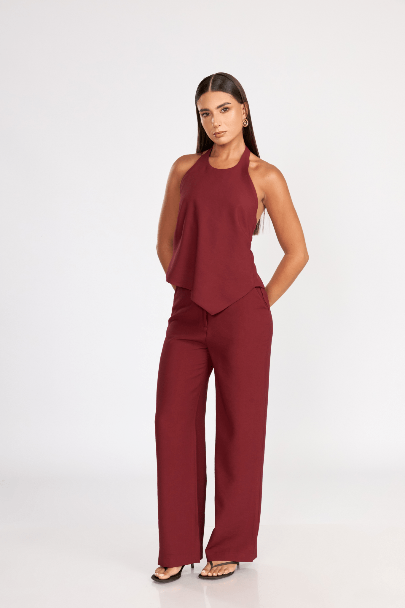 La funcionalidad es clave en Carrie: incluye cuatro pasadores para cinturón y bolsillos laterales completamente funcionales. Para garantizar un ajuste impecable y definido en la parte trasera, el pantalón incorpora dos pinzas posteriores. Además, cuenta con bolsillos decorativos de 1 vivo, un detalle discreto de alta sastrería que eleva la prenda con una elegancia sutil. Es una pieza versátil, ideal para múltiples ocasiones: lúcelo en la oficina, en una cena elegante o para un look casual-chic de fin de semana, combinándolo con sneakers o sandalias.