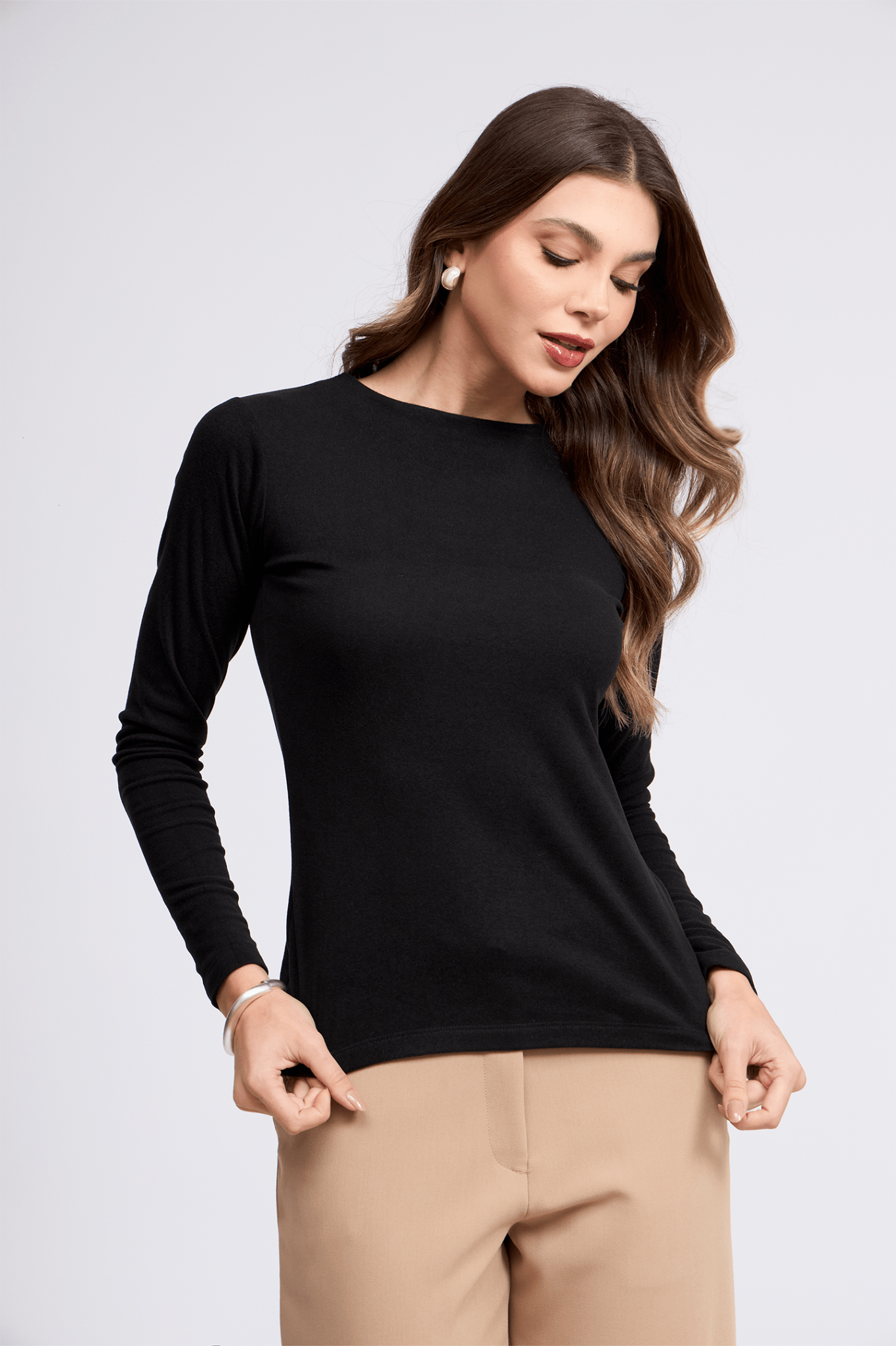 Top básico tipo chompero de manga larga y entalle regular, confeccionado en tela suave y abrigadora. Una prenda versátil y atemporal, ideal para complementar cualquier look para mayor comodidad y estilo.