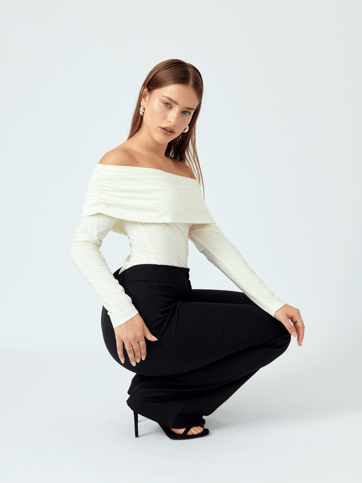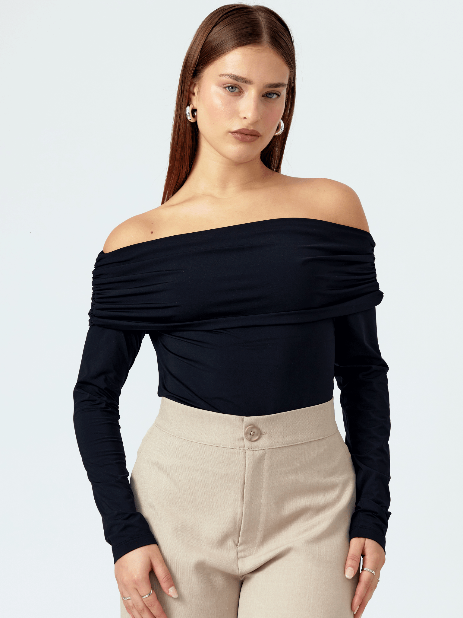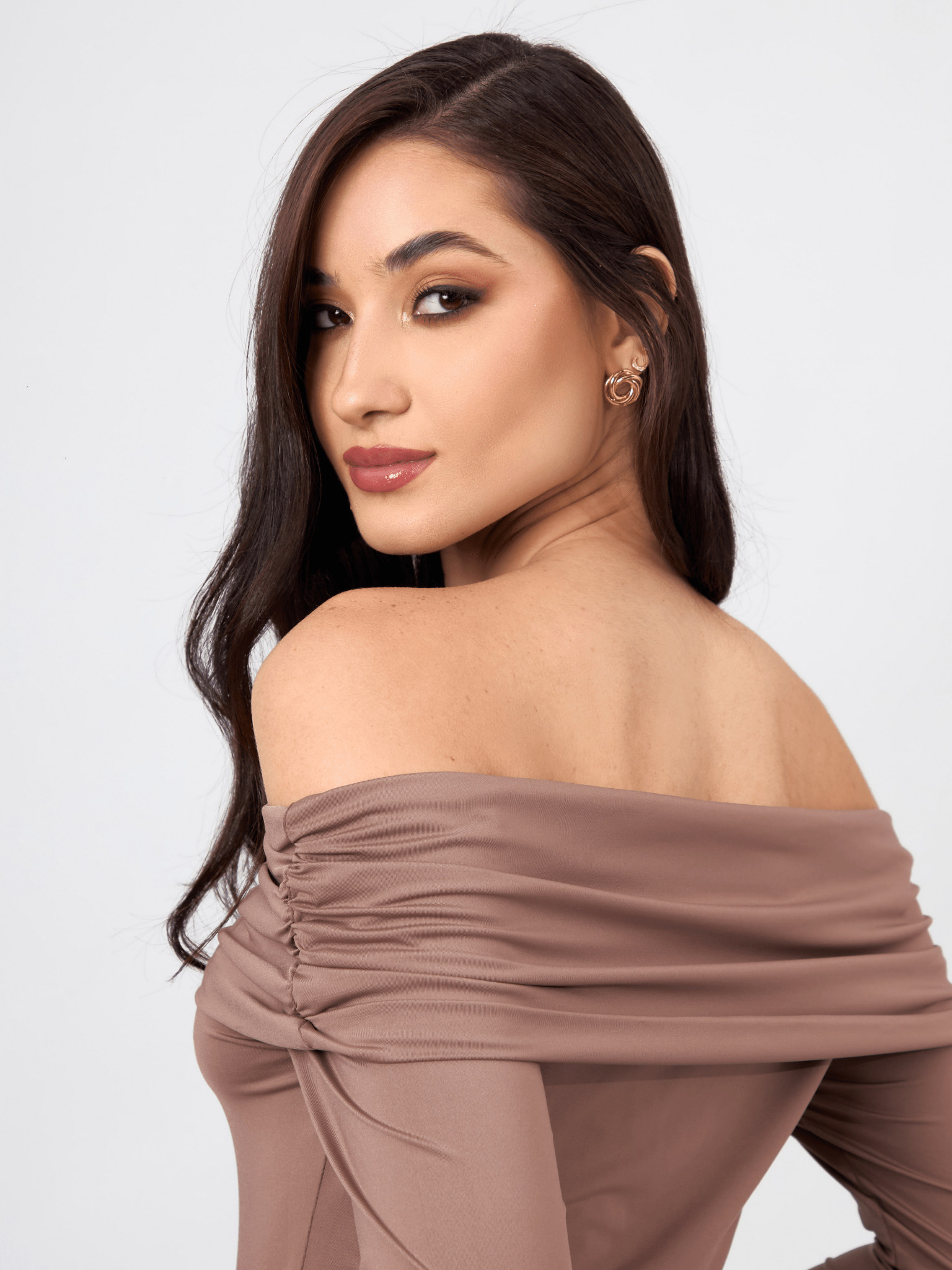 Deslumbra con estilo y sensualidad en cualquier ocasión con nuestro deslumbrante top Venus off-shoulder. Diseñado para resaltar tus curvas y añadir un toque de glamour a tu look, este top ceñido al cuerpo es la elección perfecta para las mujeres seguras y modernas. Confeccionado con un tejido elástico de alta calidad, se adapta cómodamente a tu figura, realzando tus atributos de manera elegante y sofisticada.